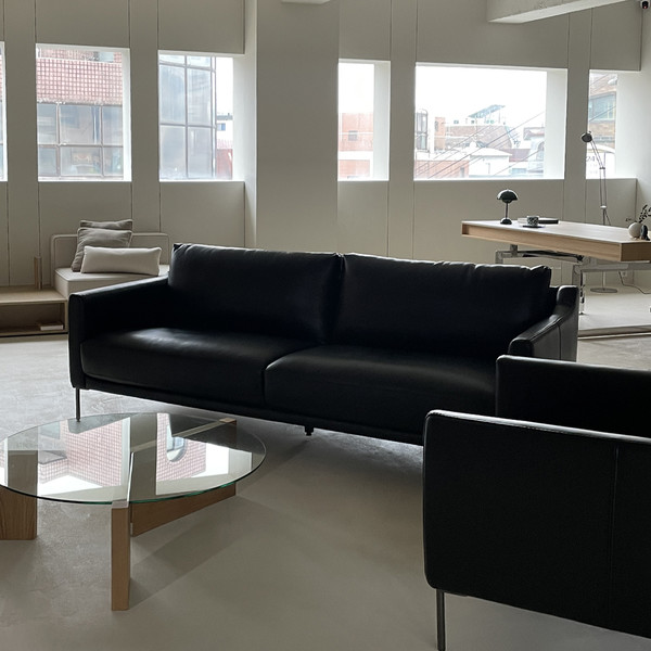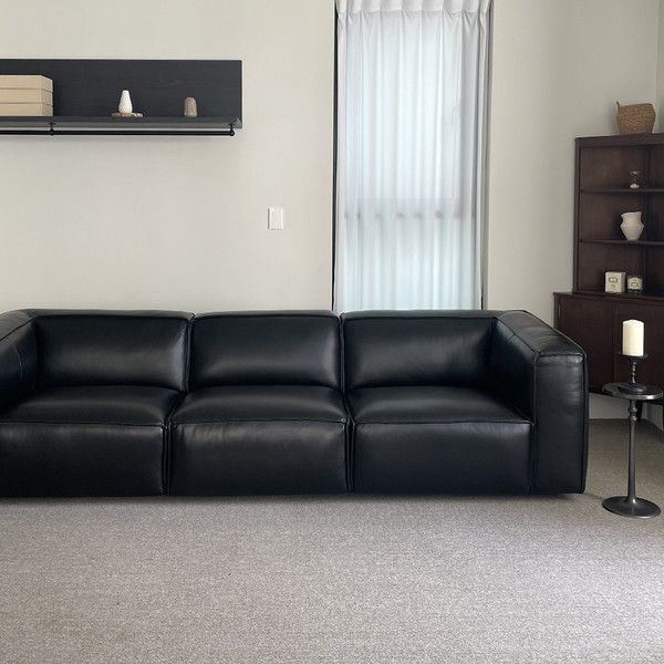 오닉스블랙 색상의 세미애닐린 가죽 소파로 시크한 무게감이