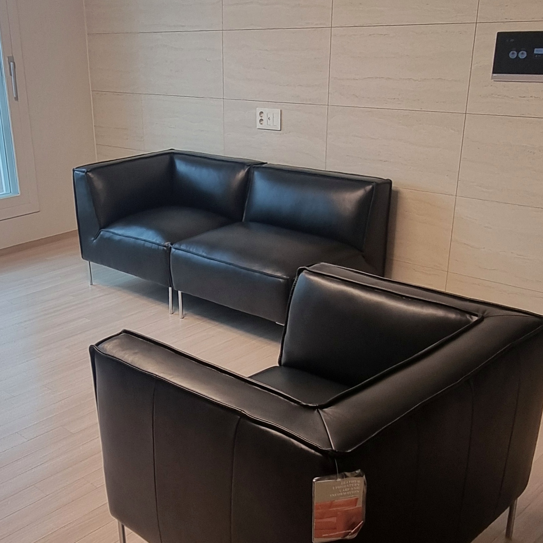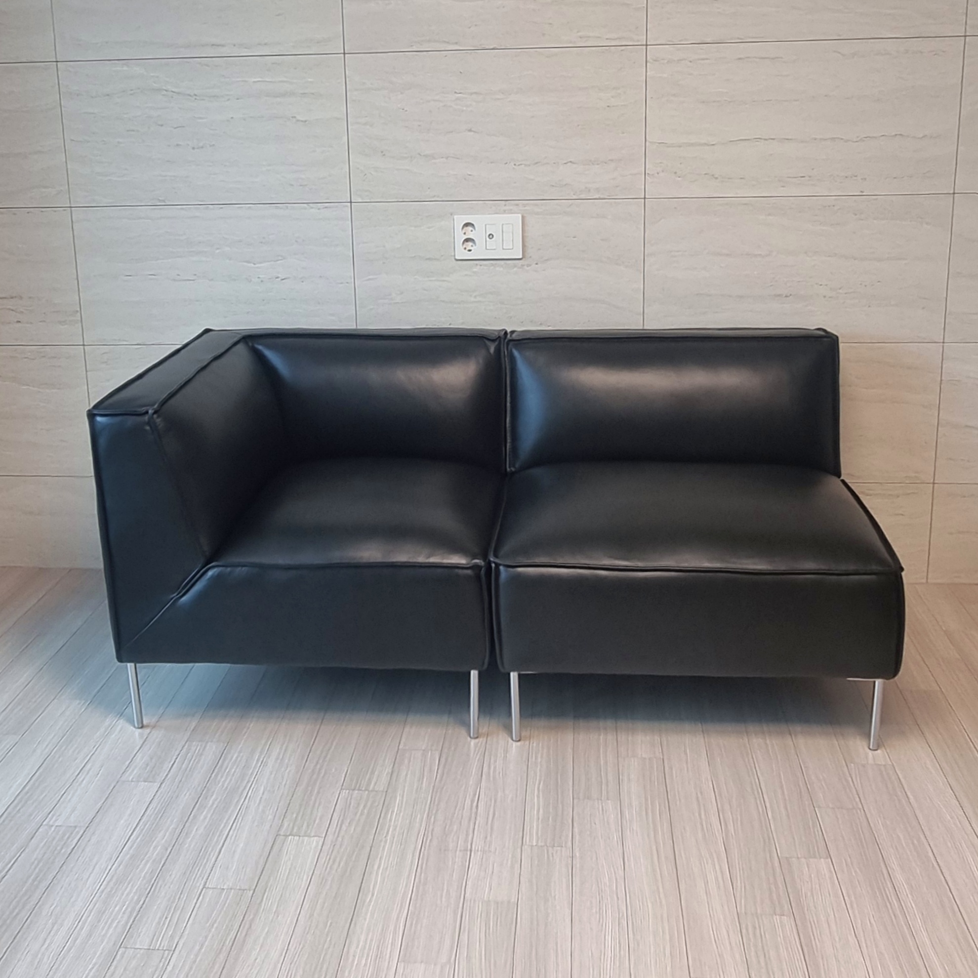 오닉스블랙 색상의 세미애닐린 가죽 소파로 시크한 무게감이